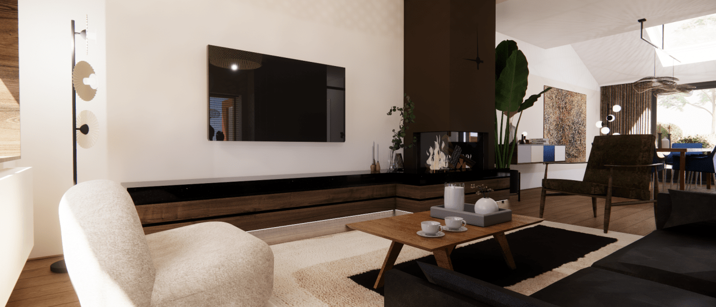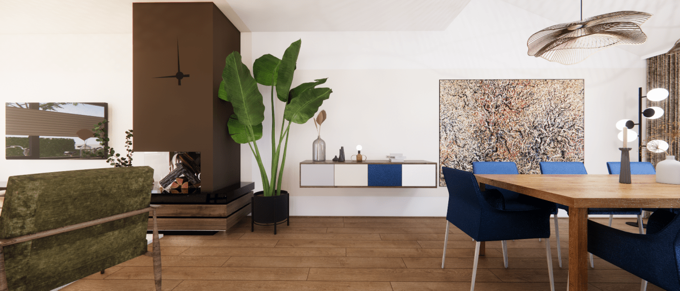 Bij dit interieurproject was de opdrachtgever op zoek naar meer samenhang in het interieur van de beneden verdieping. Hiervoor is een duidelijke lijn uitgezet die warmte en gezelligheid als speerpunten hebben. Een kleuren pallet is gemaakt en deze is in het hele interieurplan doorgevoerd. Mooie warme en zachte materialen zijn gebruikt.