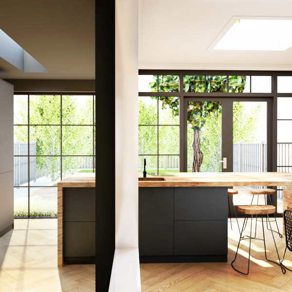 Na selectie van het traject begint het ontwerpen van de trapkast. In gesprek met de opdrachtgever wordt de garderobe ontworpen volgens de methodiek van Bassie Architectuur. Het start met schetsen, waarna een 3D ontwerp wordt gemaakt. Uiteindelijk wordt de trapkast uitgewerkt naar technische tekeningen voor de interieurbouwer.